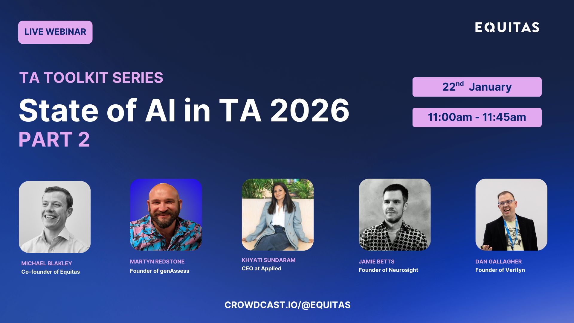 Michael Blakley and Equitas are hosting me, Khyati Sundaram, Jamie Betts and Dan Gallagher for part 2 of our 'explosive' no-holds-barred conversation on AI in TA.
